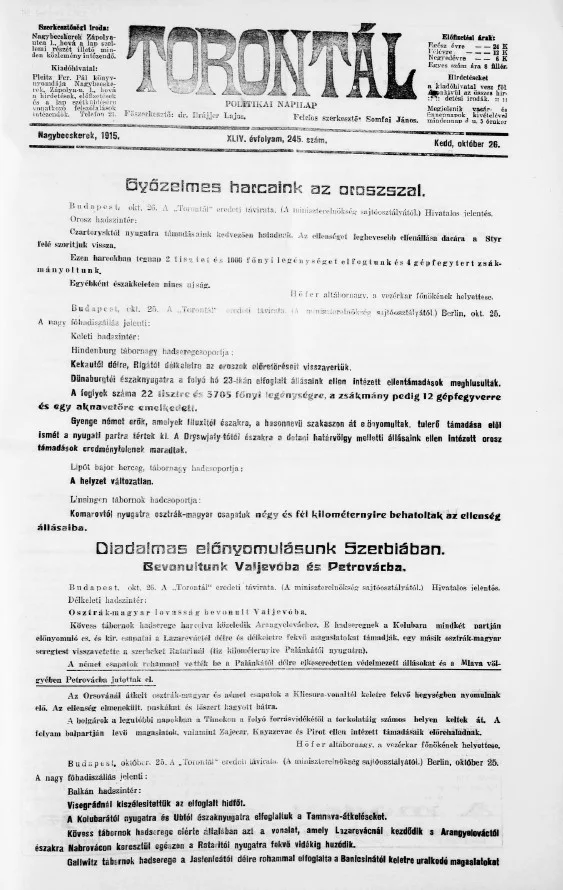 Torontál, 44. évf. 1915. október 26. 245. sz.