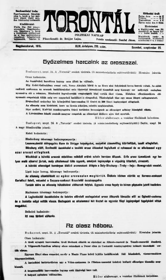 Torontál, 44. évf. 1915. szeptember 25. 219. sz.