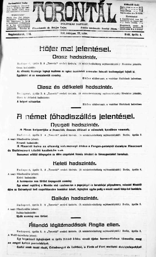 Torontál, 45. évf. 1916. április 4. 77. sz.