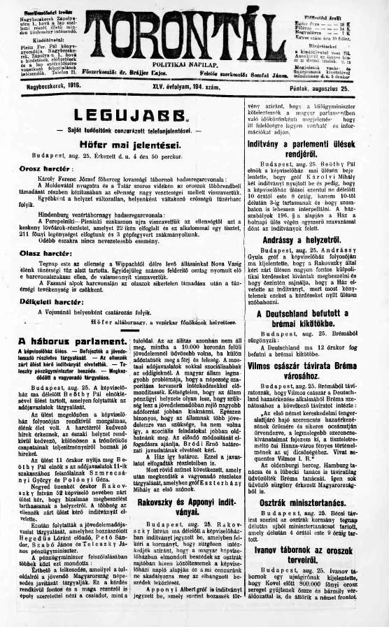 Torontál, 45. évf. 1916. augusztus 25. 194. sz.