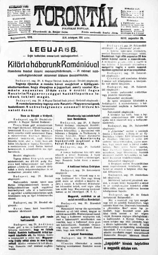 Torontál, 45. évf. 1916. augusztus 28. 196. sz.