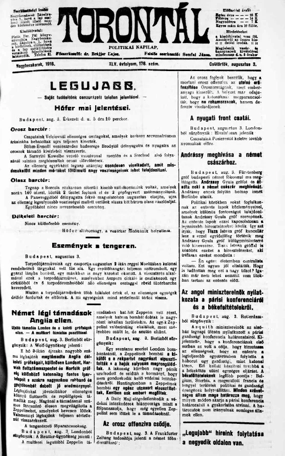 Torontál, 45. évf. 1916. augusztus 3. 176. sz.
