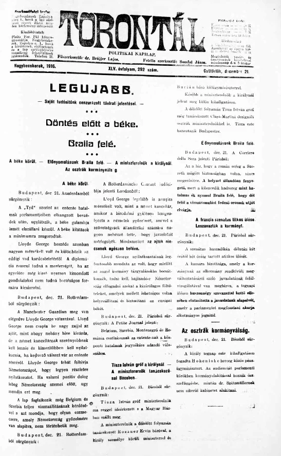 Torontál, 45. évf. 1916. december 21. 292. sz.