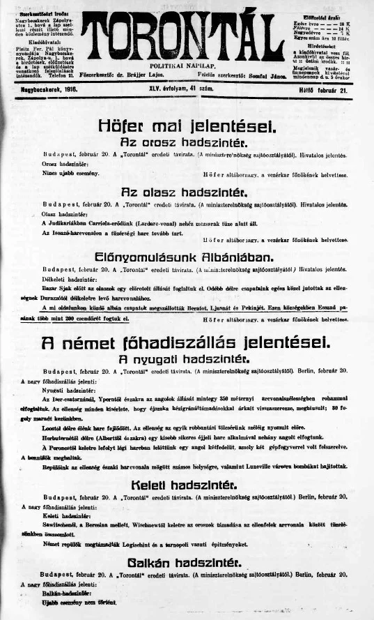Torontál, 45. évf. 1916. február 21. 41. sz.