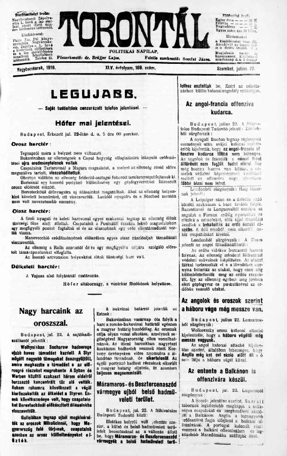 Torontál, 45. évf. 1916. július 22. 166. sz.
