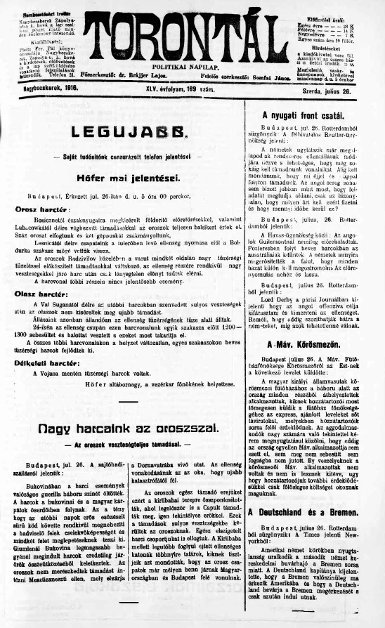 Torontál, 45. évf. 1916. július 26. 169. sz.