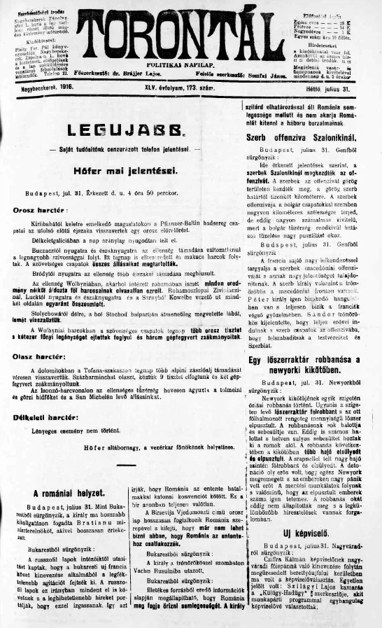 Torontál, 45. évf. 1916. július 31. 173. sz.