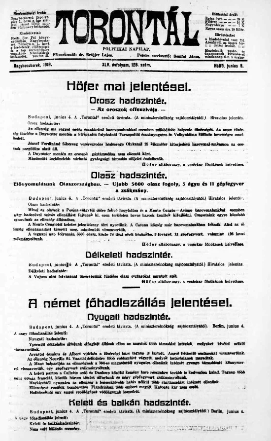 Torontál, 45. évf. 1916. június 5. 128. sz.