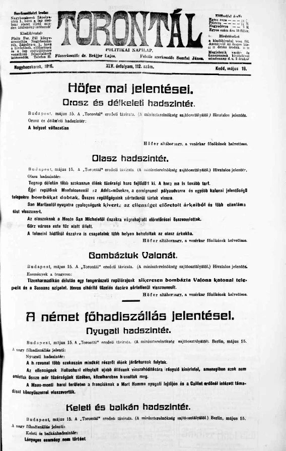 Torontál, 45. évf. 1916. május 16. 112. sz.