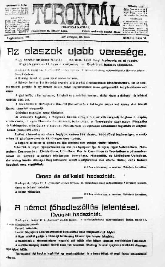 Torontál, 45. évf. 1916. május 18. 114. sz.