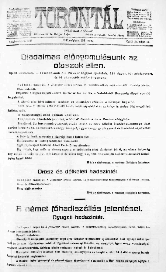 Torontál, 45. évf. 1916. május 25. 120. sz.