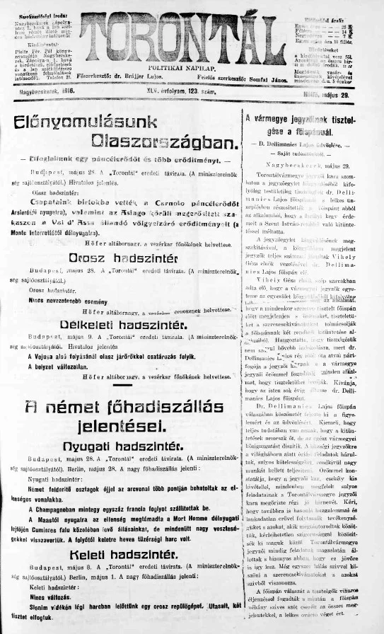 Torontál, 45. évf. 1916. május 29. 123. sz.