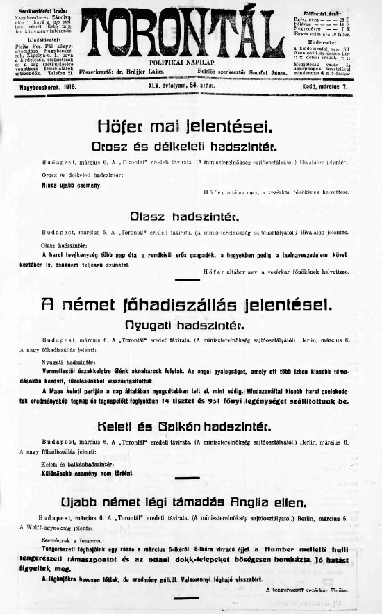 Torontál, 45. évf. 1916. március 7. 54. sz.