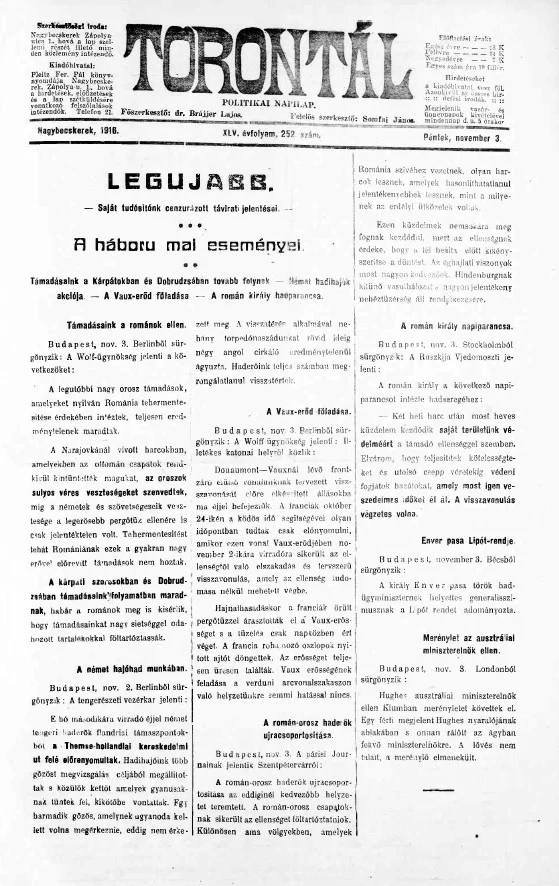 Torontál, 45. évf. 1916. november 3. 252. sz.