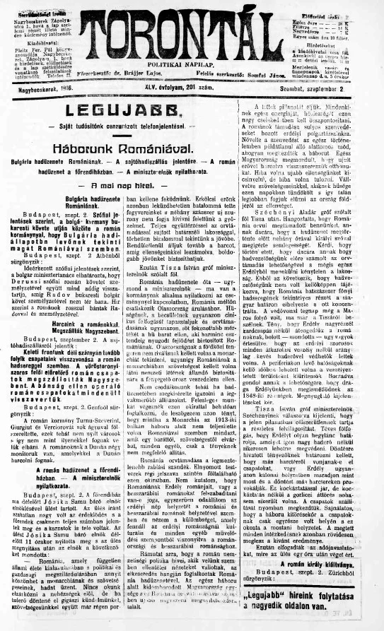 Torontál, 45. évf. 1916. szeptember 2. 201. sz.