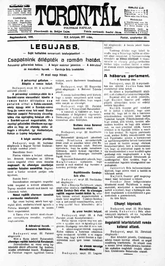 Torontál, 45. évf. 1916. szeptember 22. 217. sz.