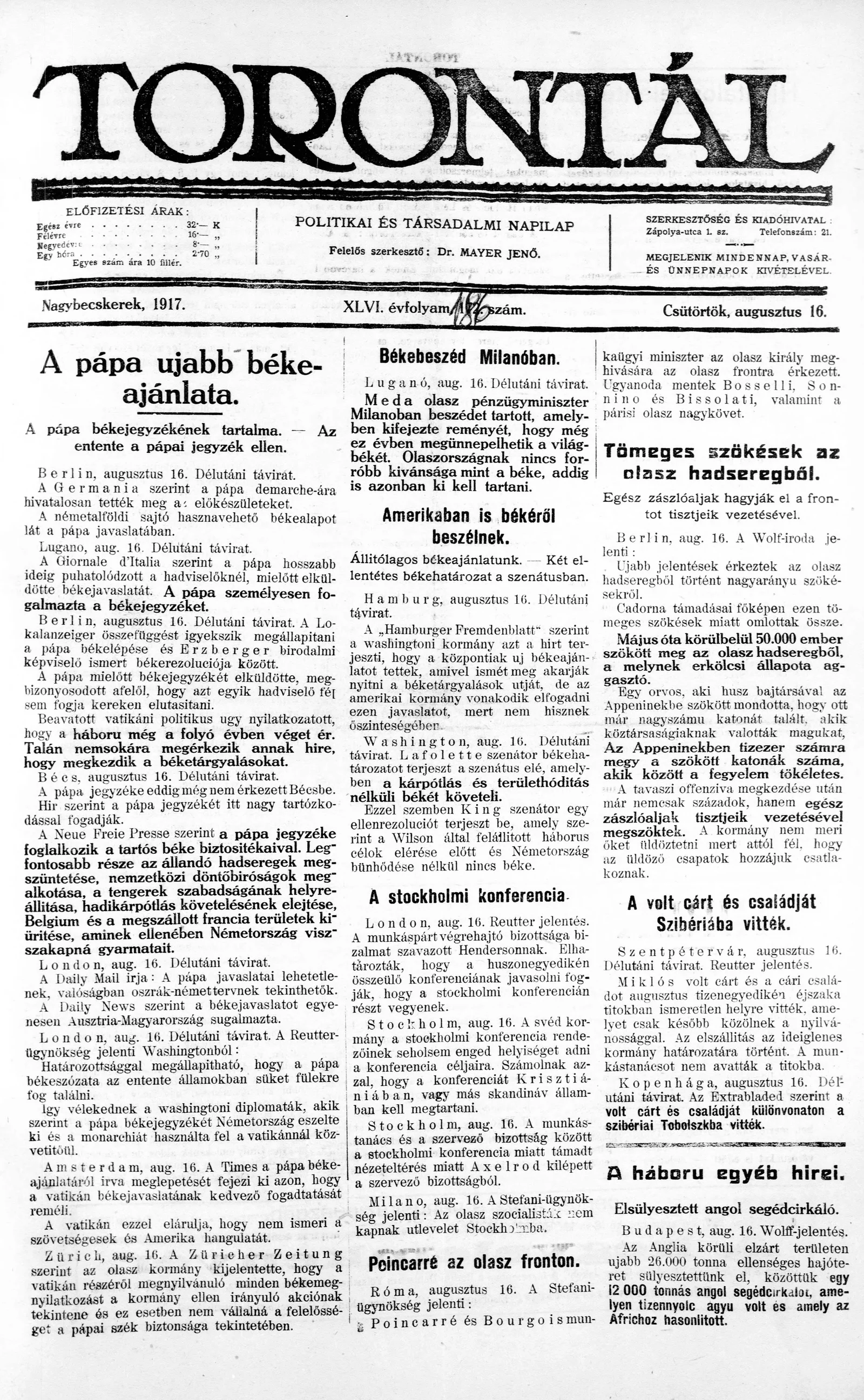 Torontál, 46. évf. 1917. augusztus 16. 186. sz.