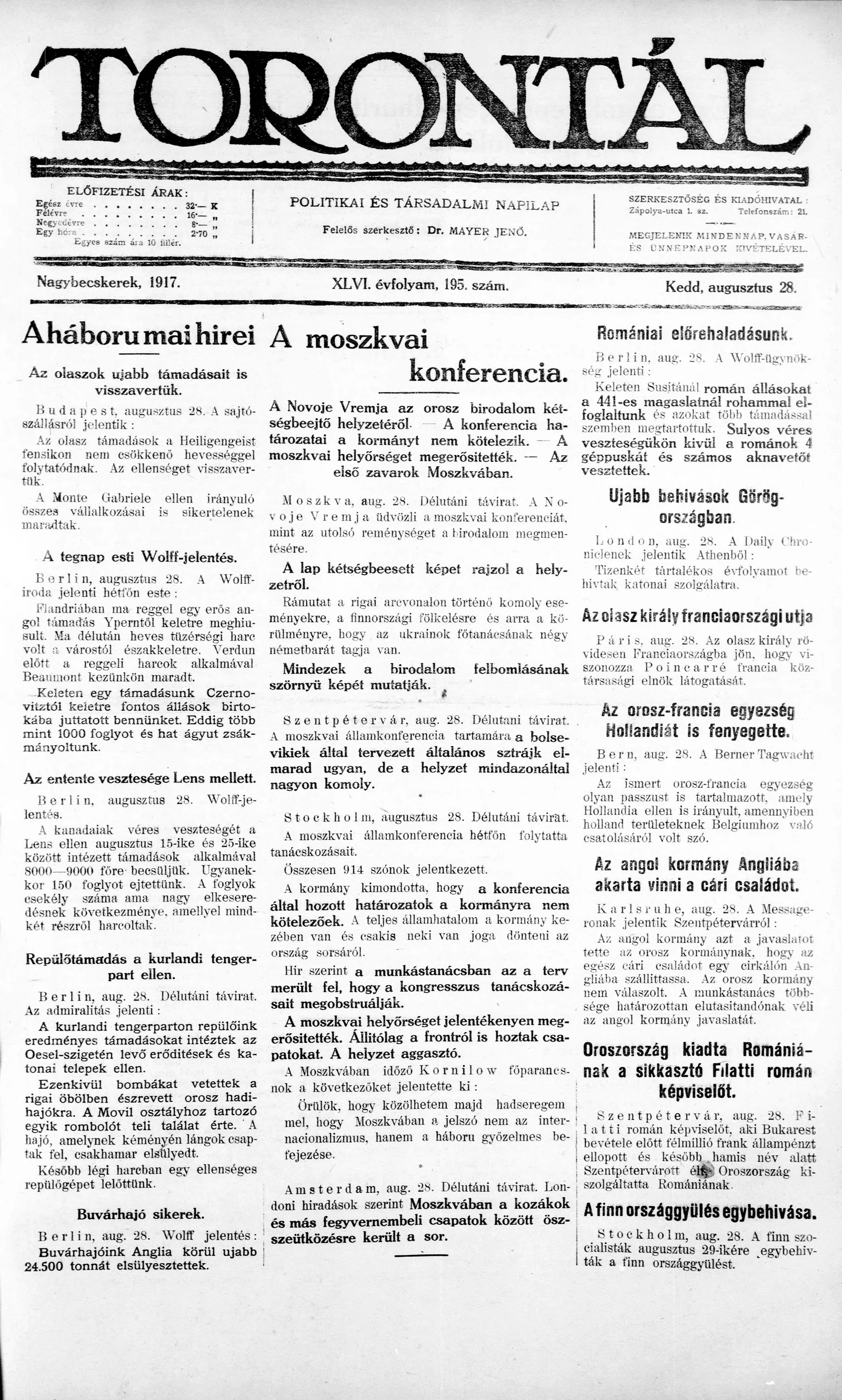 Torontál, 46. évf. 1917. augusztus 28. 195. sz.