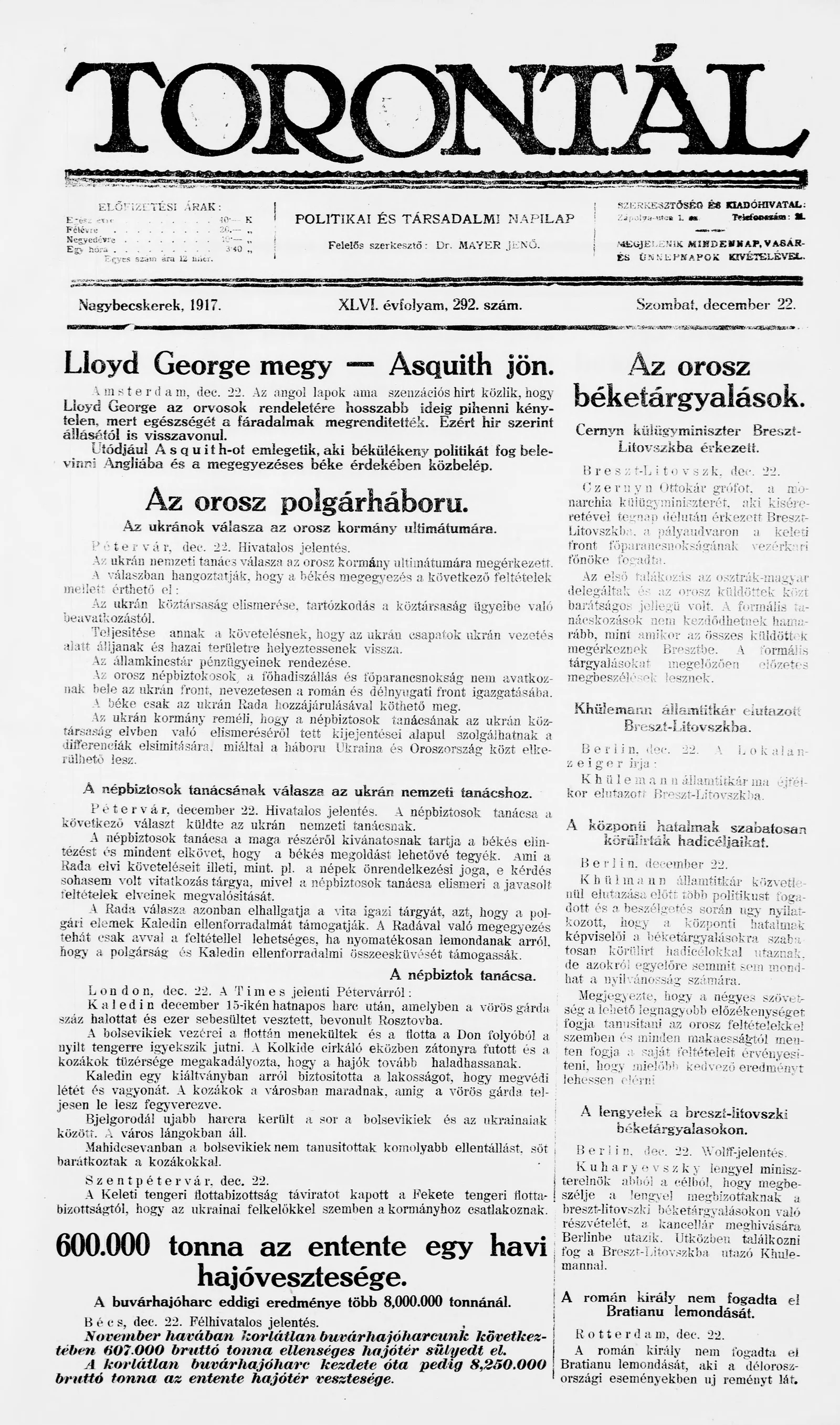 Torontál, 46. évf. 1917. december 22. 292. sz.