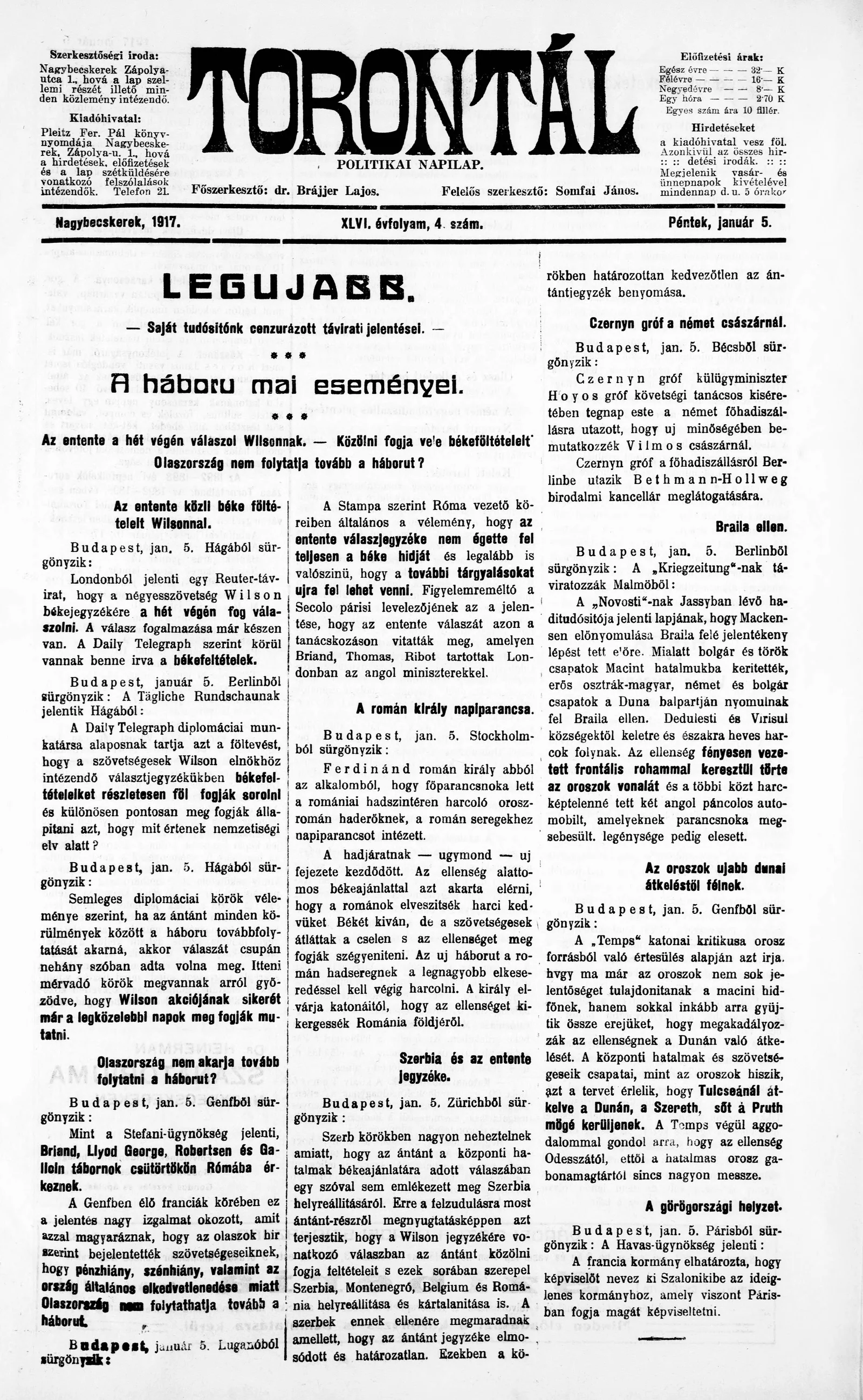 Torontál, 46. évf. 1917. január 5. 4. sz.