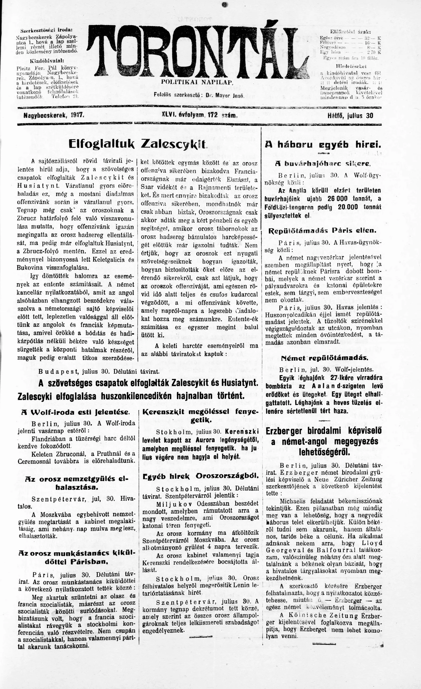 Torontál, 46. évf. 1917. július 30. 172. sz.