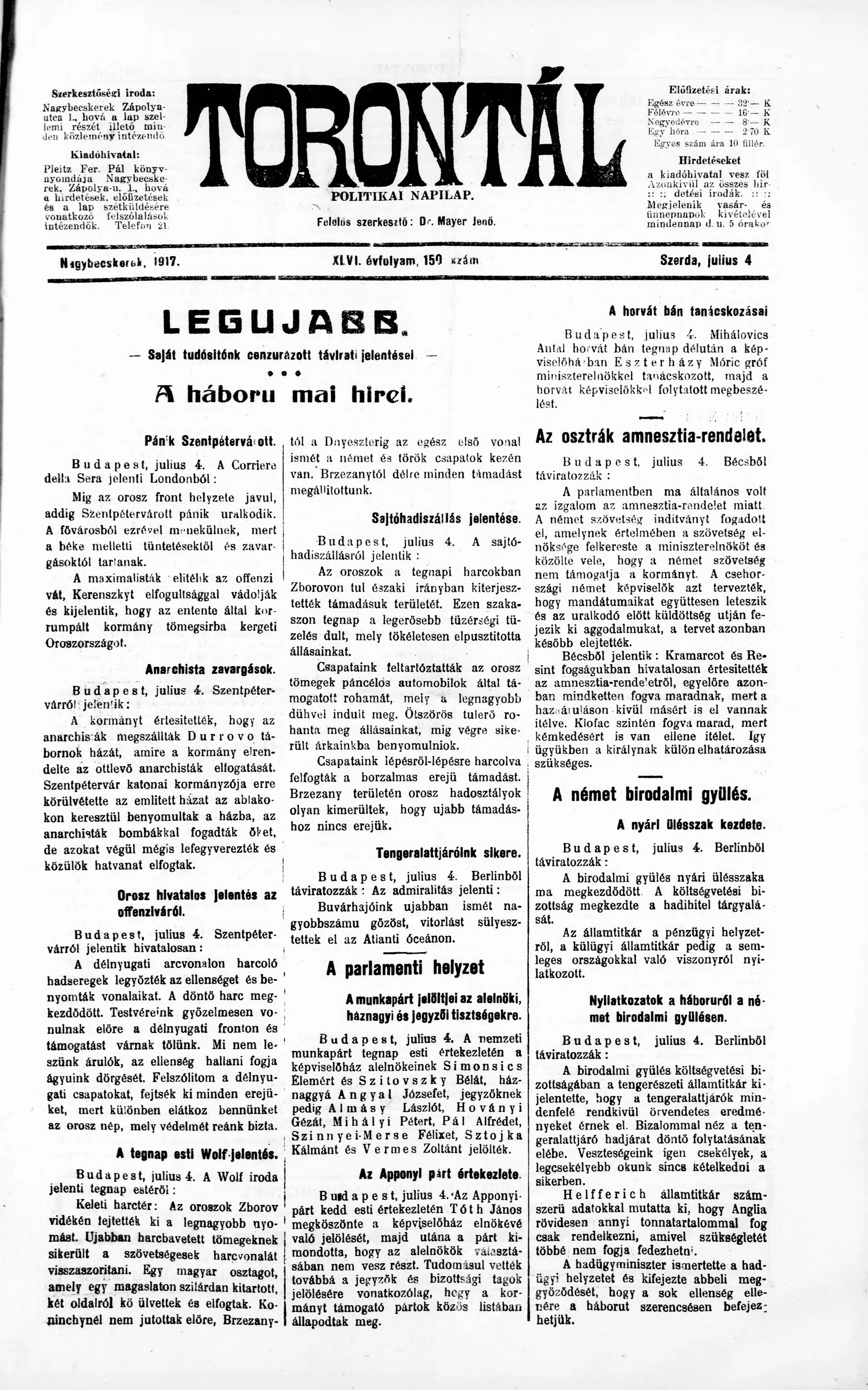 Torontál, 46. évf. 1917. július 4. 150. sz.