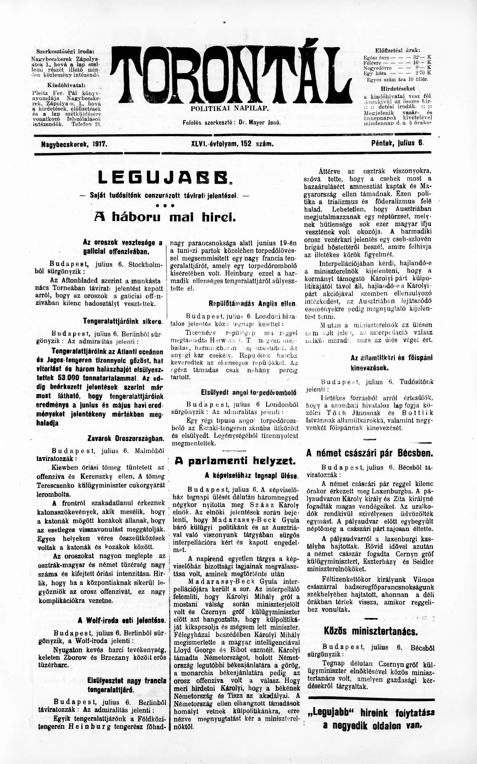 Torontál, 46. évf. 1917. július 6. 152. sz.