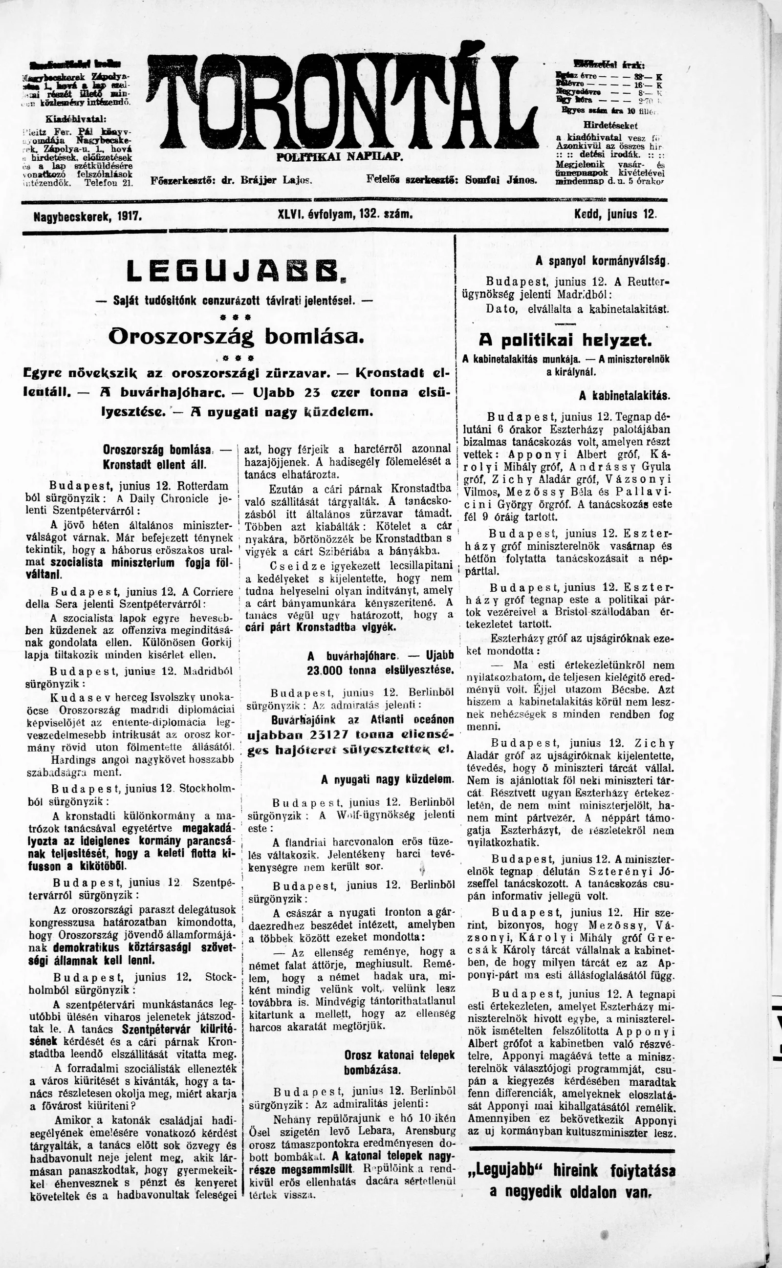 Torontál, 46. évf. 1917. június 12. 132. sz.