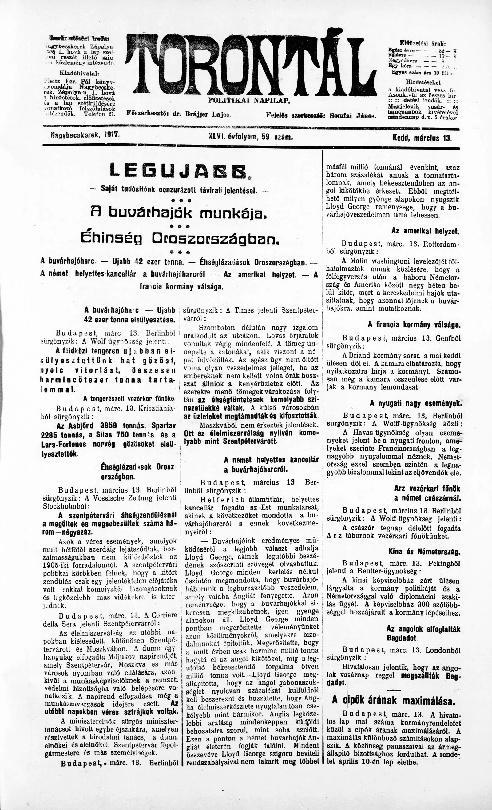 Torontál, 46. évf. 1917. március 13. 59. sz.