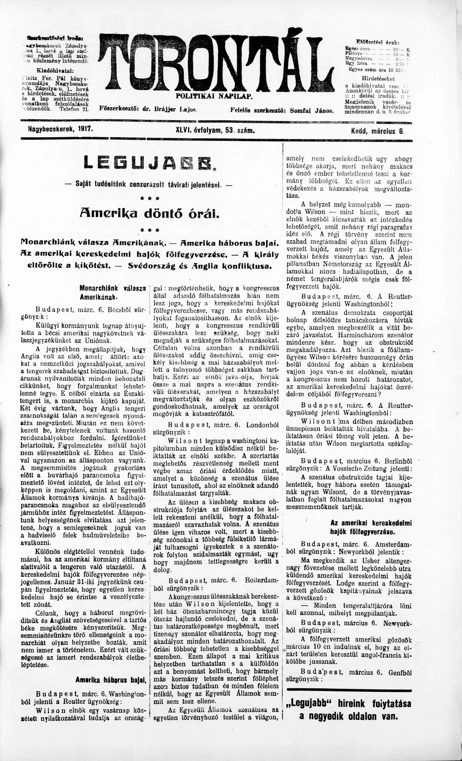Torontál, 46. évf. 1917. március 6. 53. sz.