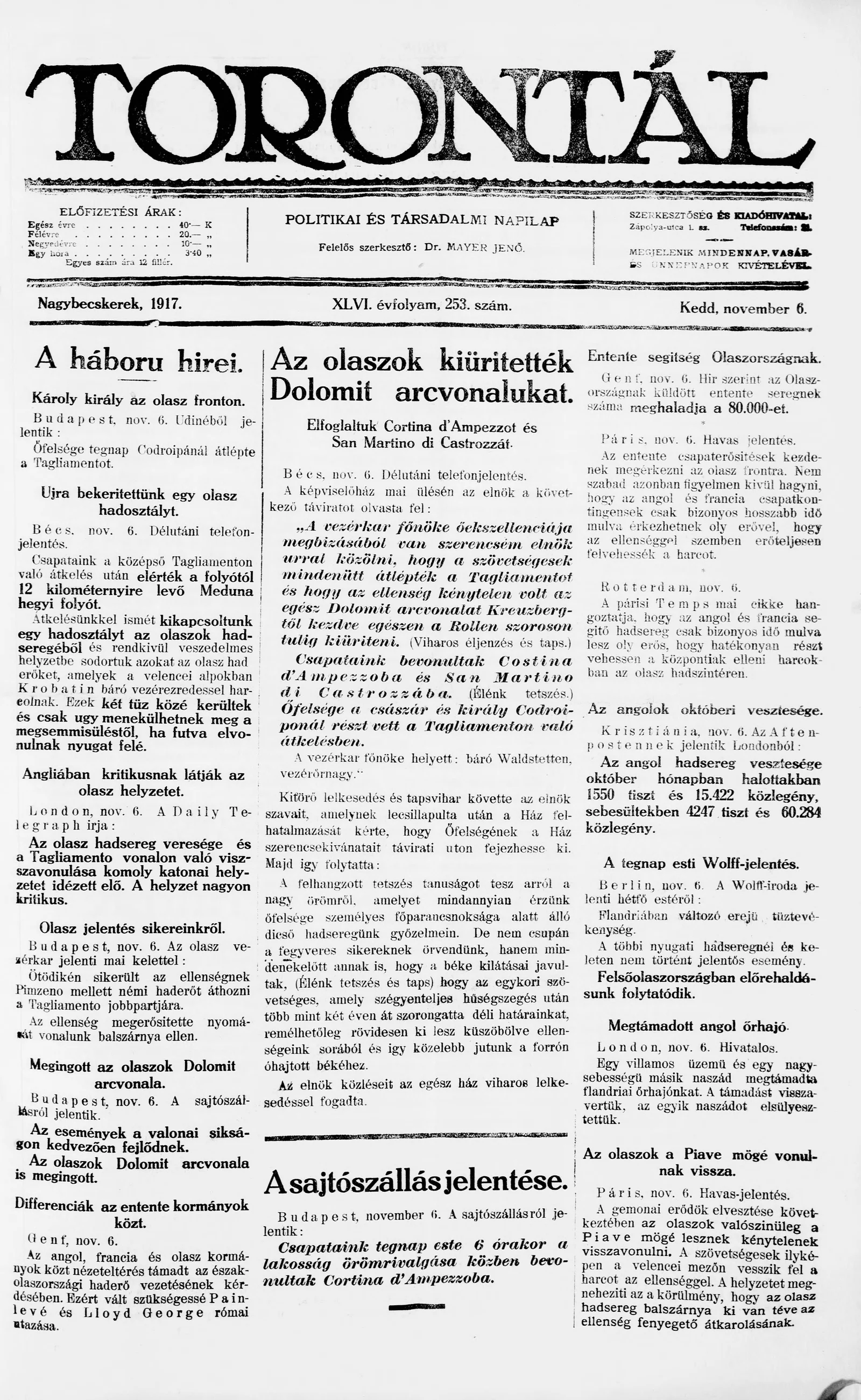 Torontál, 46. évf. 1917. november 6. 253. sz.