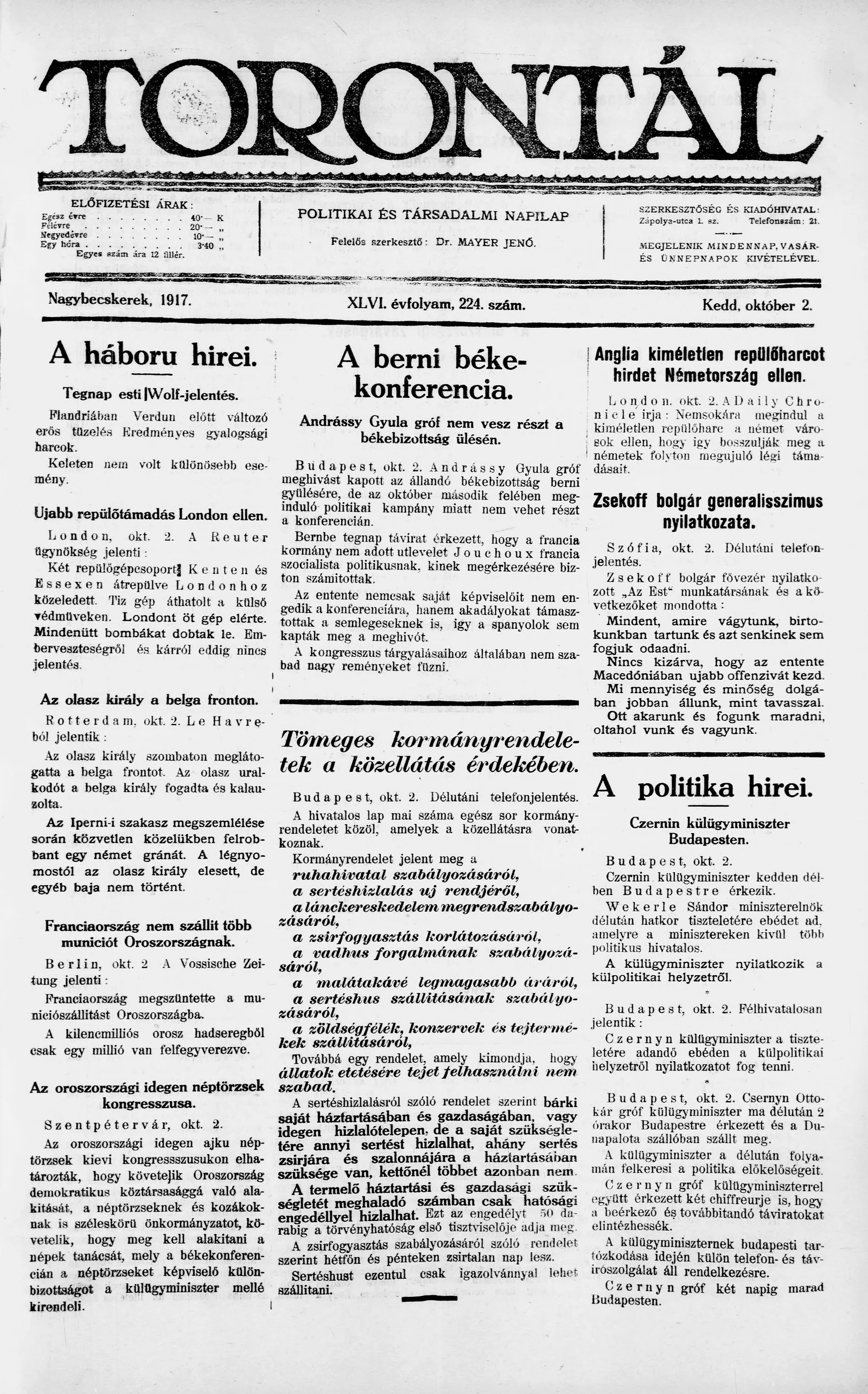 Torontál, 46. évf. 1917. október 2. 224. sz.