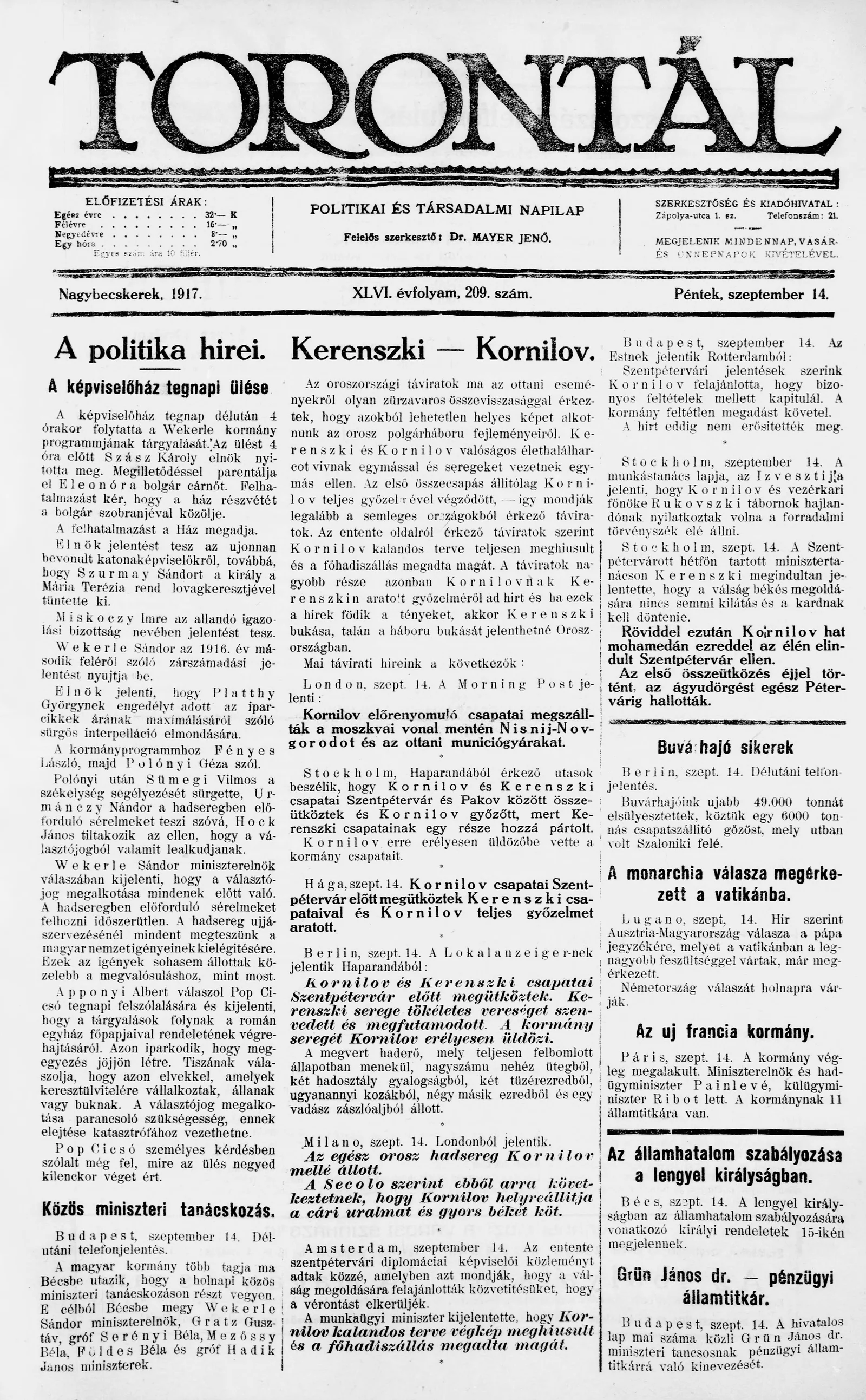 Torontál, 46. évf. 1917. szeptember 9. 209. sz.