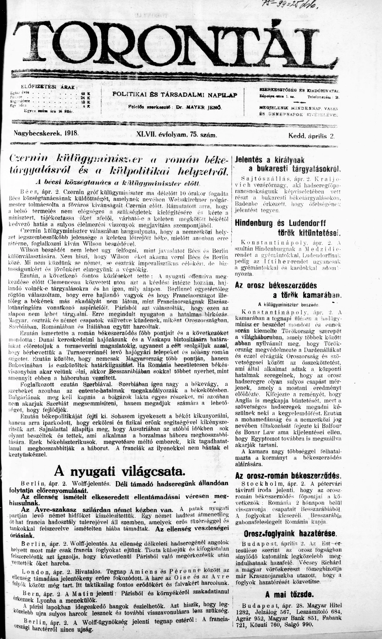 Torontál, 47. évf. 1918. április 2. 75. sz.