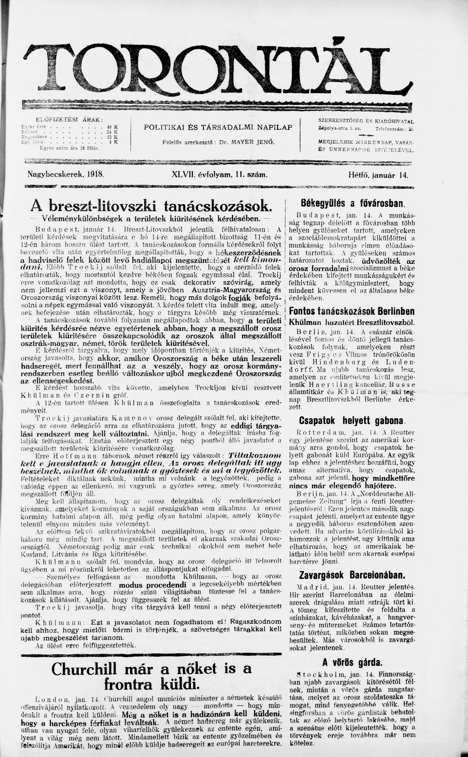 Torontál, 47. évf. 1918. január 14. 11. sz.
