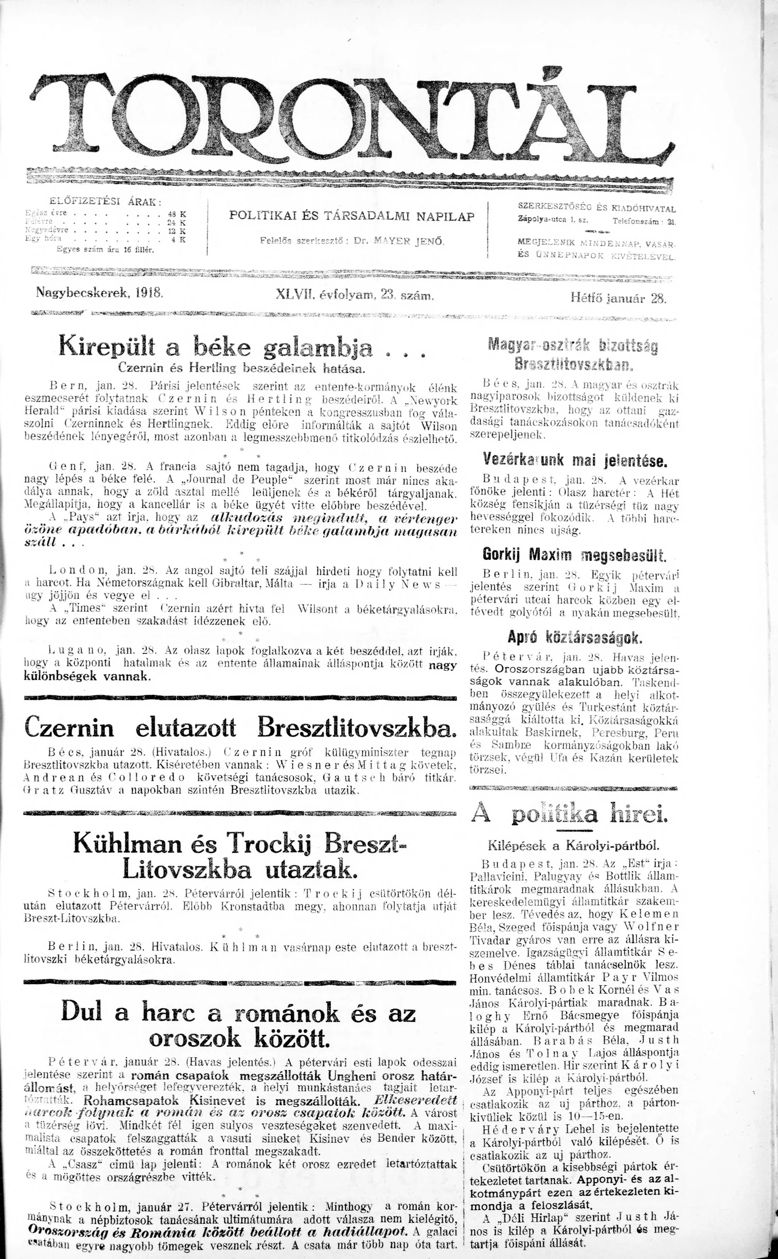 Torontál, 47. évf. 1918. január 28. 23. sz.