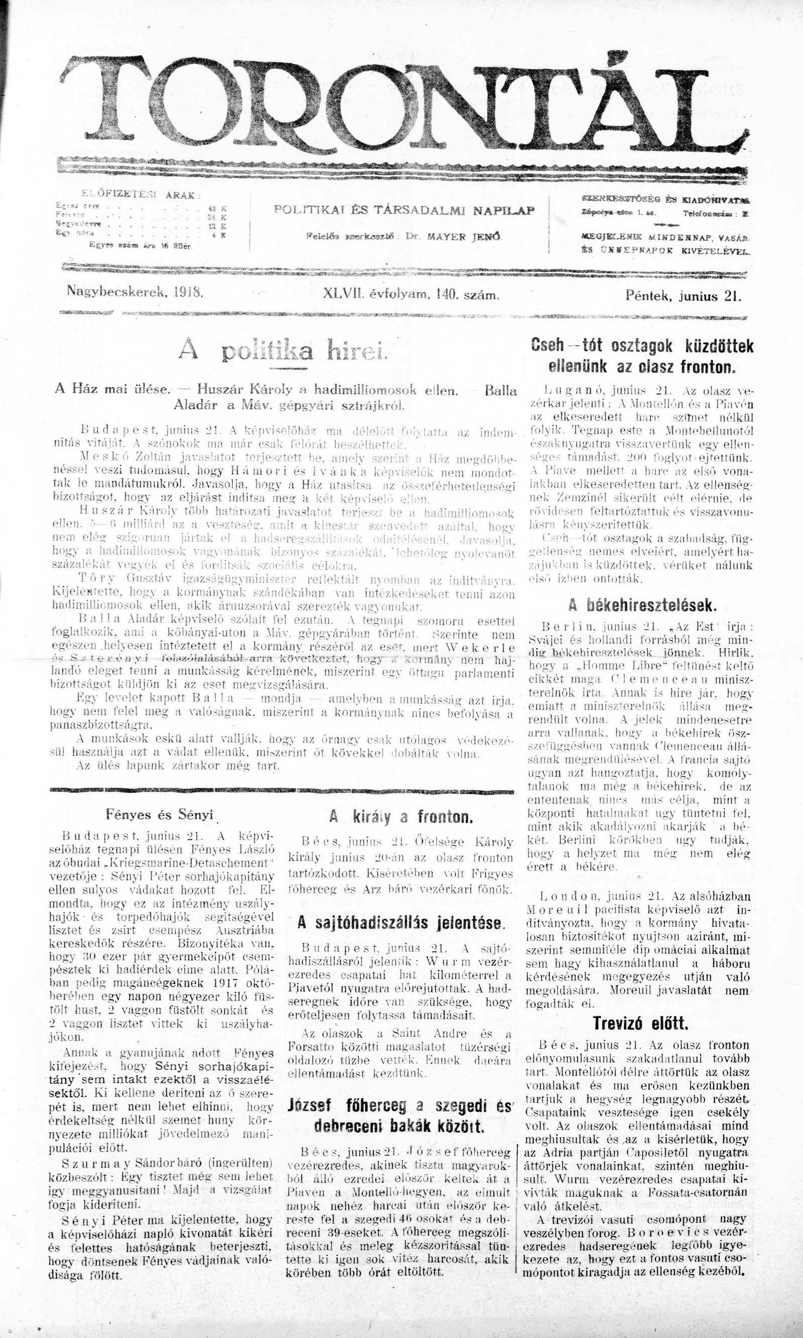 Torontál, 47. évf. 1918. június 21. 140. sz.
