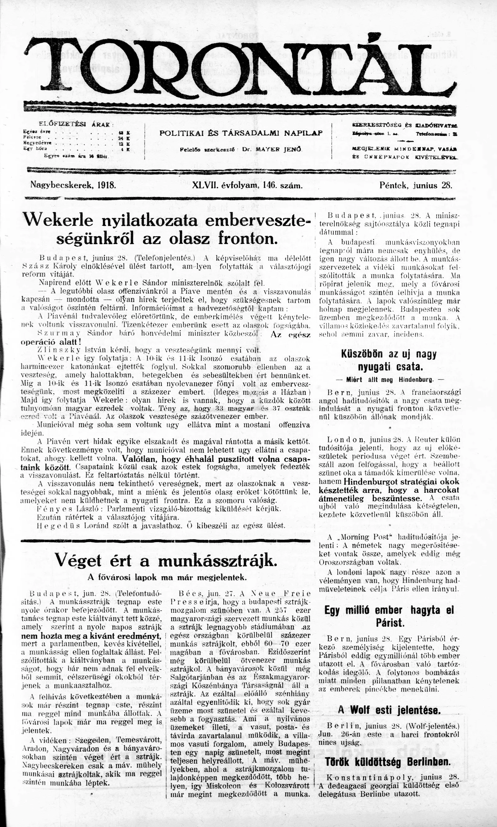Torontál, 47. évf. 1918. június 28. 146. sz.