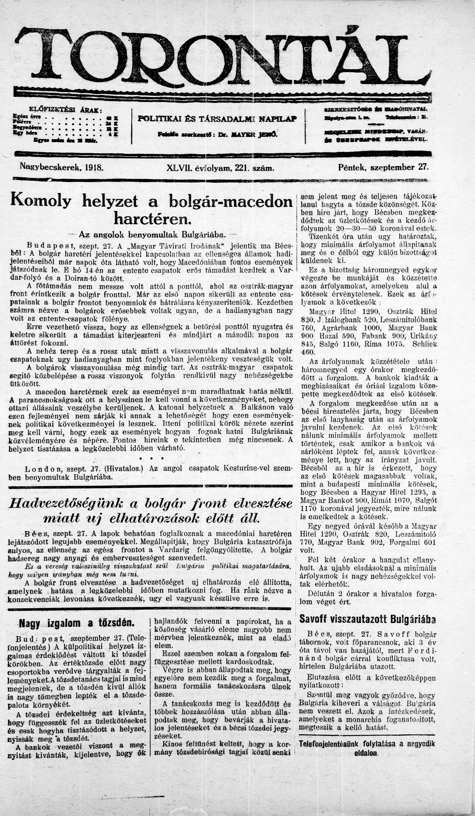 Torontál, 47. évf. 1918. szeptember 27. 221. sz.