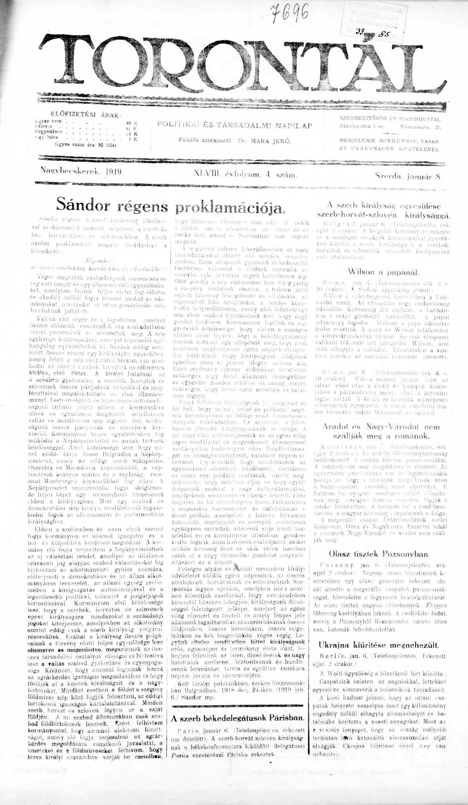 Torontál, 48. évf. 1919. január 8. 4. sz.