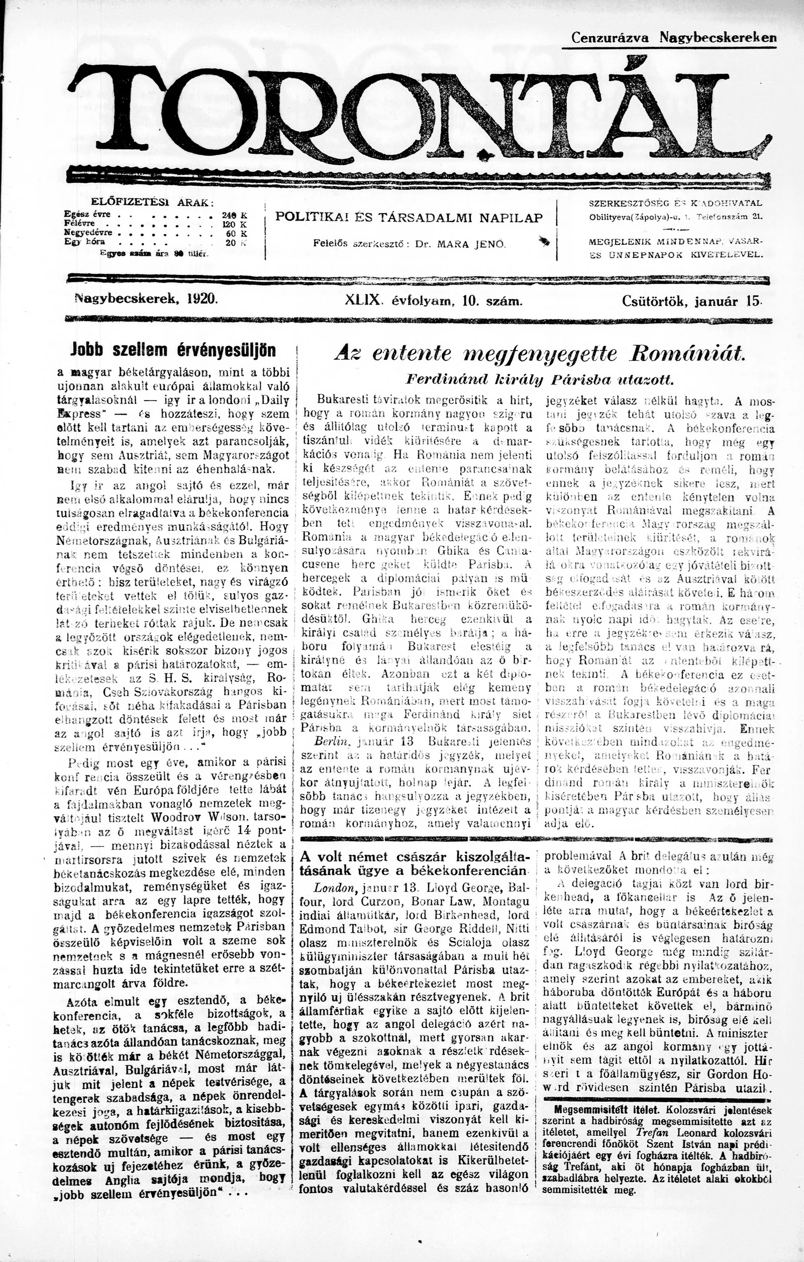 Torontál, 49. évf. 1920. január 15. 10. sz.