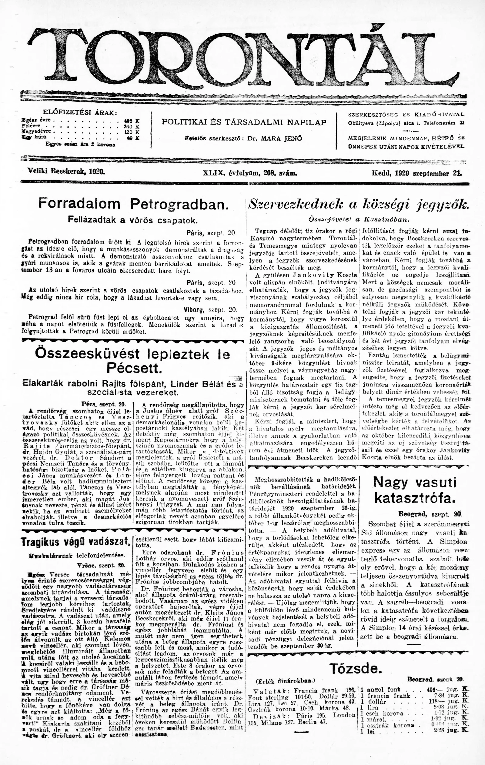 Torontál, 49. évf. 1920. szeptember 21. 208. sz.