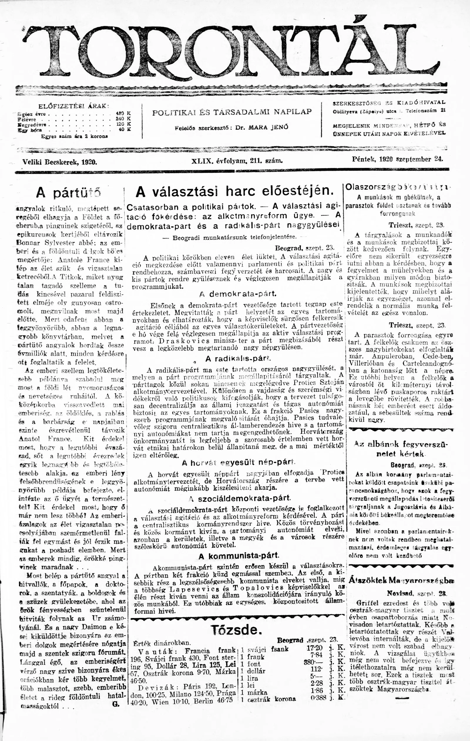 Torontál, 49. évf. 1920. szeptember 24. 211. sz.