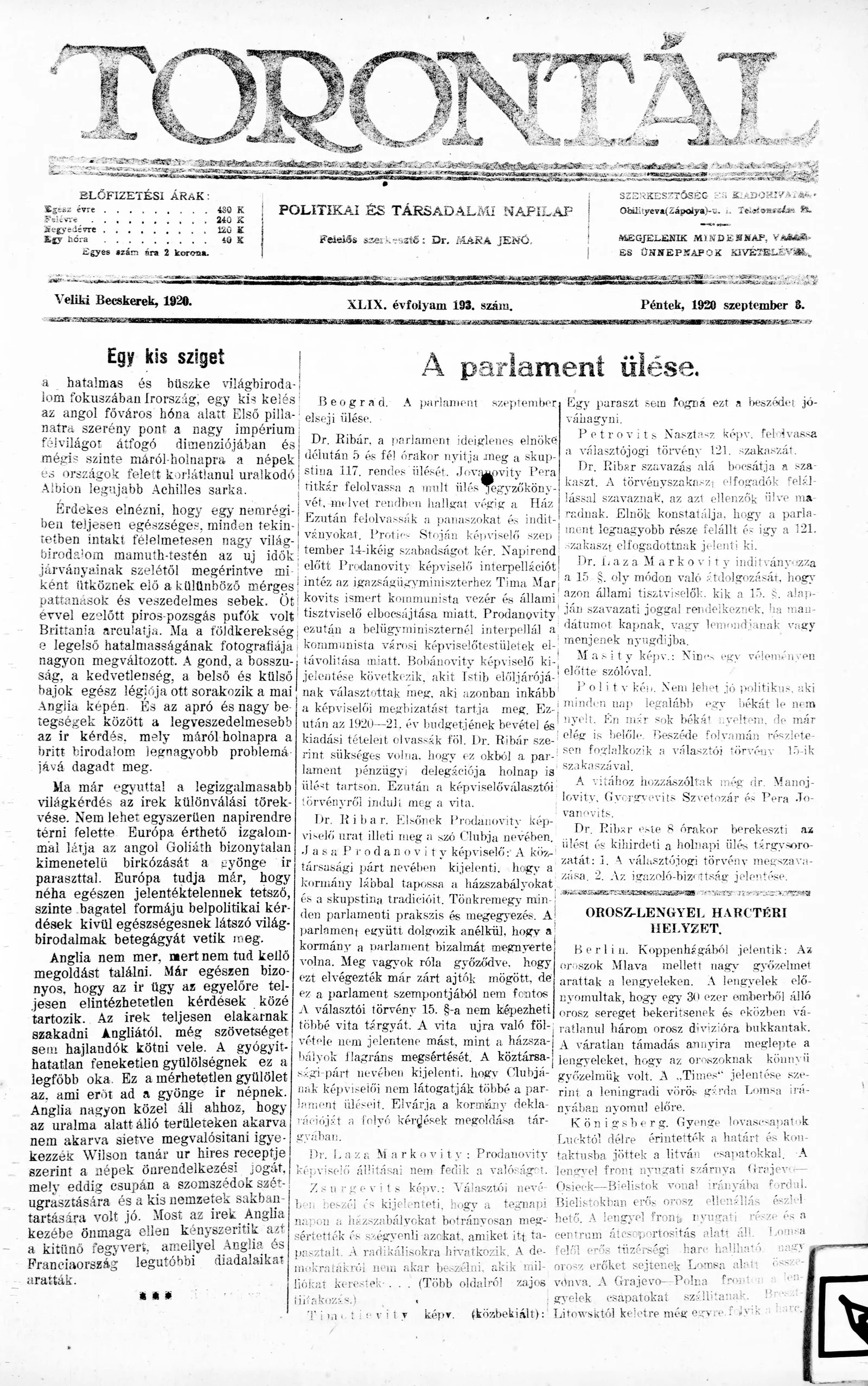 Torontál, 49. évf. 1920. szeptember 3. 193. sz.