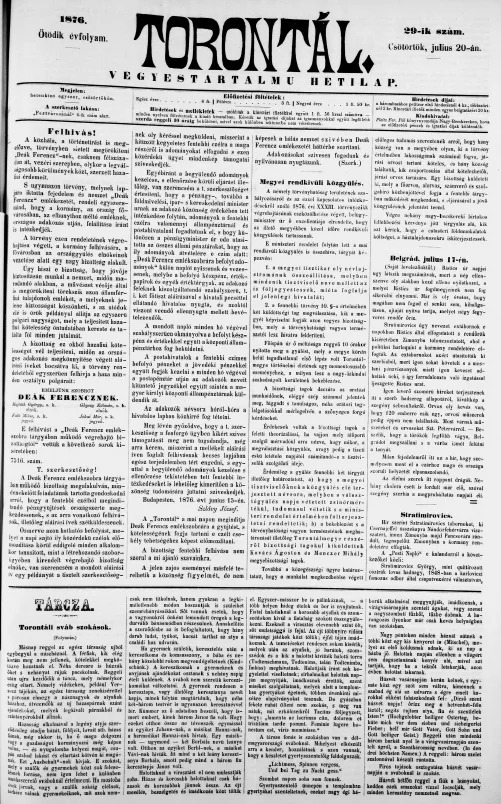Torontál, 5. évf. 1876. július 20. 29. sz.