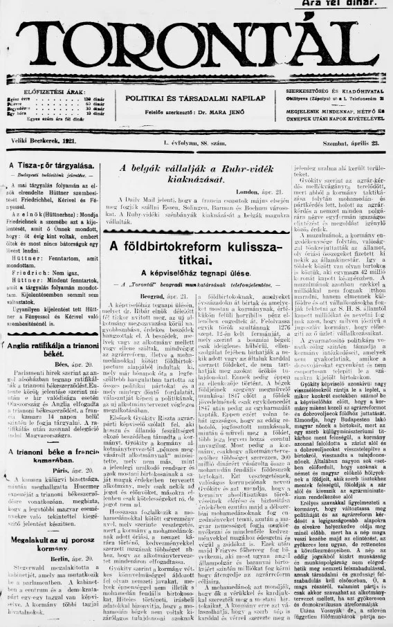 Torontál, 50. évf. 1921. április 23. 88. sz.