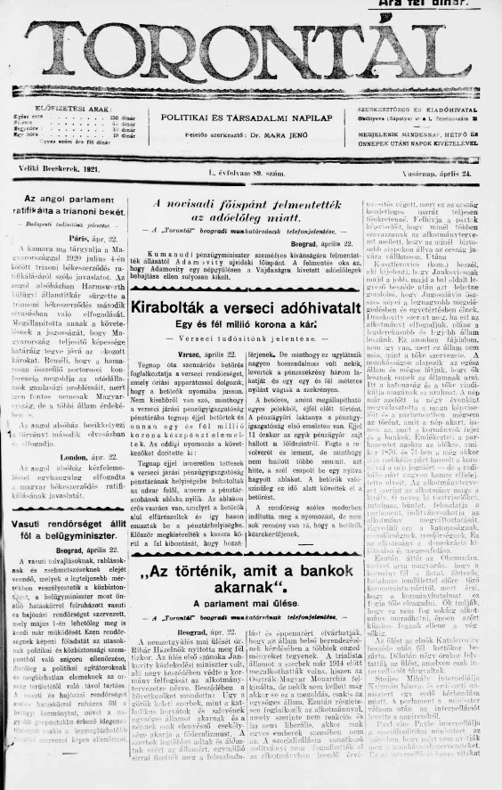 Torontál, 50. évf. 1921. április 24. 89. sz.