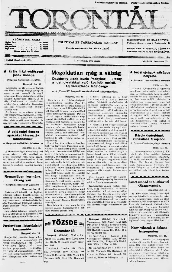 Torontál, 50. évf. 1921. december 15. 276. sz.