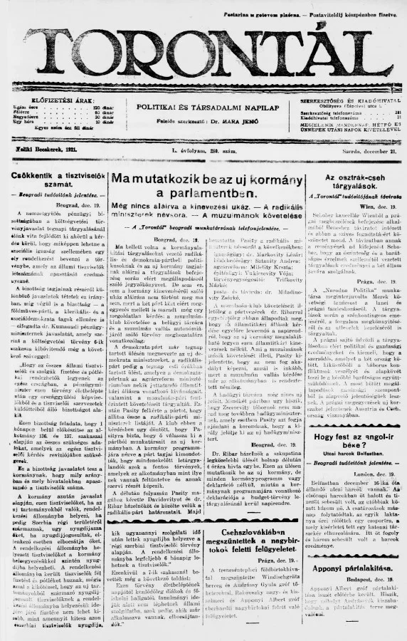 Torontál, 50. évf. 1921. december 21. 280. sz.