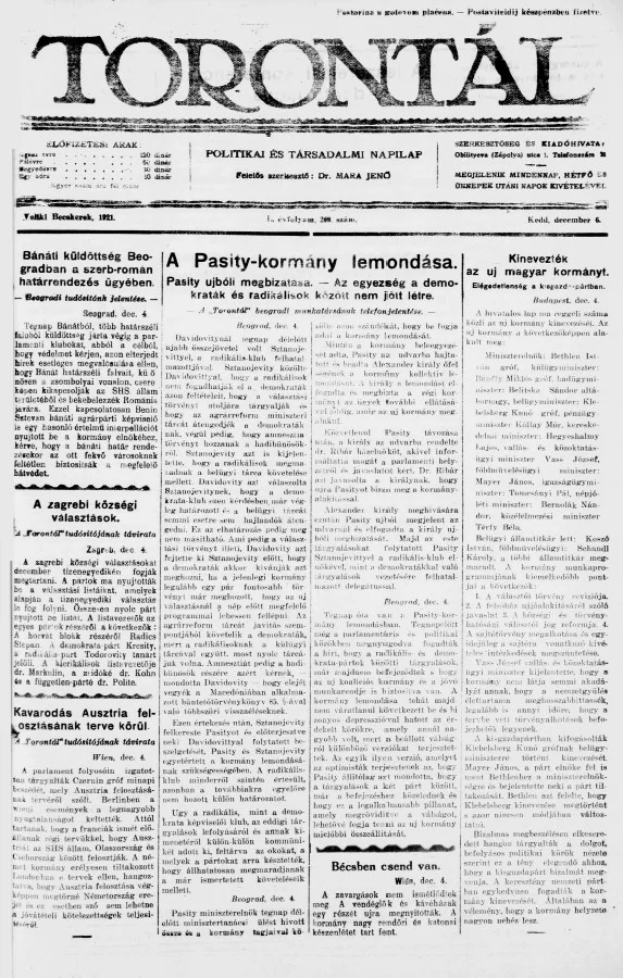Torontál, 50. évf. 1921. december 6. 269. sz.